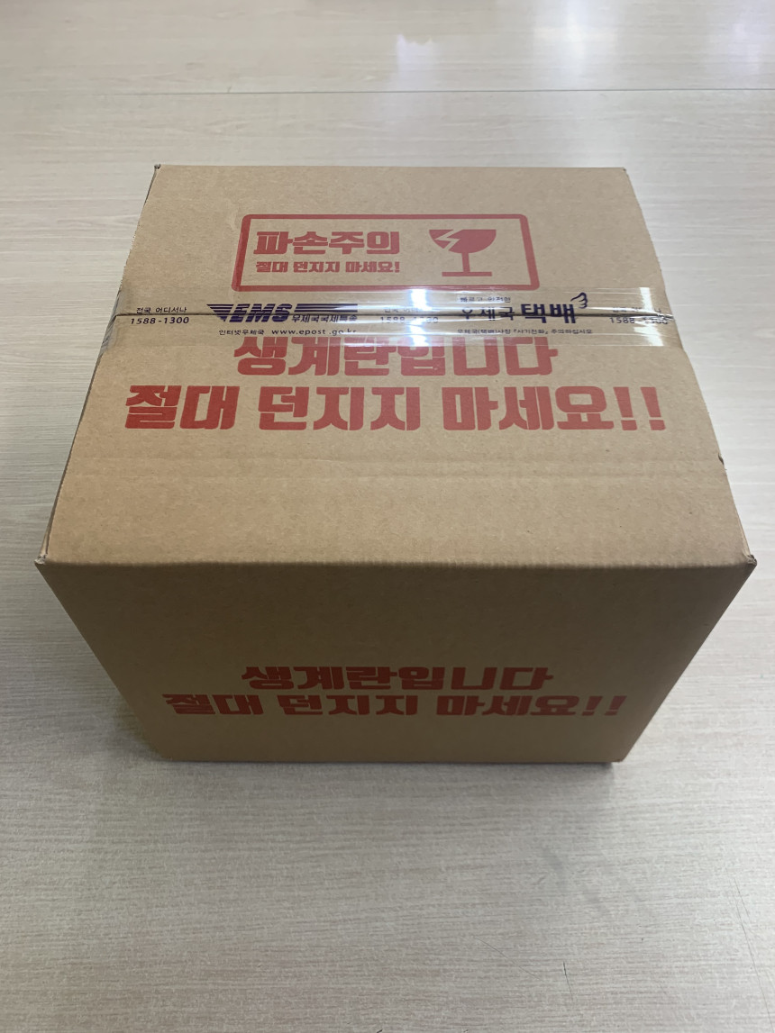 판과 판 사이에 두꺼운 뽁뽁이를 감싸 계란을 고정한 뒤 박스에 넣어 포장됩니다.